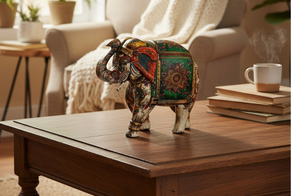 Add a touch of majestic cultural artistry to your home with the Hand-Painted Solid Wood Miniature Ceremonial Elephant. This premium miniature decor piece is masterfully hand-carved from solid wood, capturing the soulful spirit of traditional artisan craftsmanship.