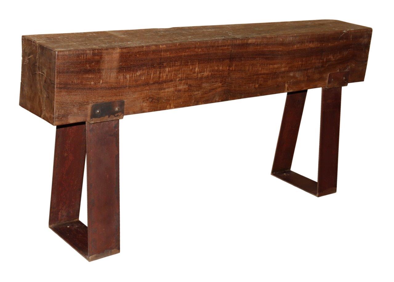 Embrace the beauty of raw materials with the Reclaimed Beam Console Table. This premium statement piece features a massive, solid wood beam with a rich, natural grain and deep textural character.