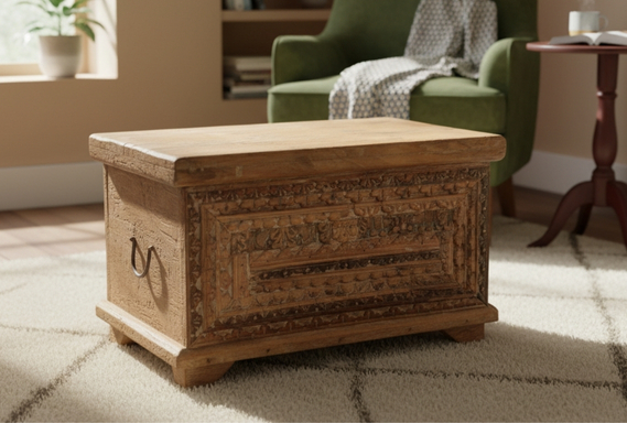 Reclaimed Wood Carved Fitted Storage Chest