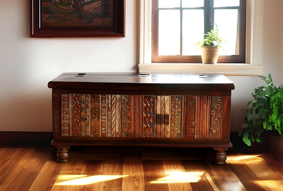 Reclaimed Wood Carved Storage Trunk