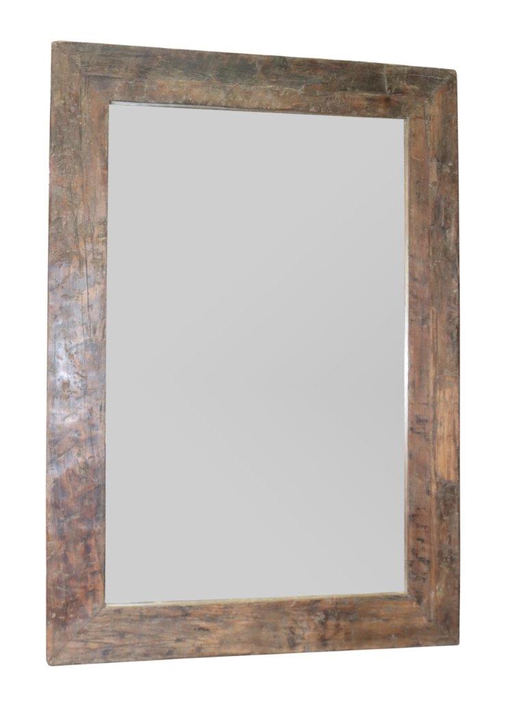 The design is defined by its majestic simplicity, showcasing a multi-tonal weathered finish with visible wood grain, knots, and a rich patina characteristic of fine reclaimed wood. The deep, chunky frame adds architectural depth to any wall, making it a perfect artisan centerpiece for a luxury entryway, a rustic-modern living room, or a sophisticated master suite.