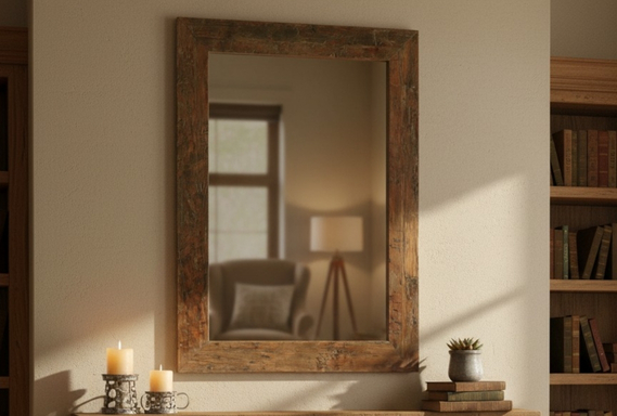 Expand your space with the rugged, organic soul of the Reclaimed Wood Timber-Framed Mirror. This premium accent piece is handcrafted from substantial planks of solid wood, featuring a wide, mitered frame that celebrates the raw, unadorned beauty of natural timber.