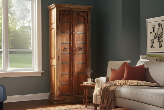 Command attention in any room with the Solid Wood Arched-Header Armoire. This premium storage masterpiece is handcrafted from substantial solid wood, featuring a rich, warm patina that highlights the authentic grain and storied texture of the timber.