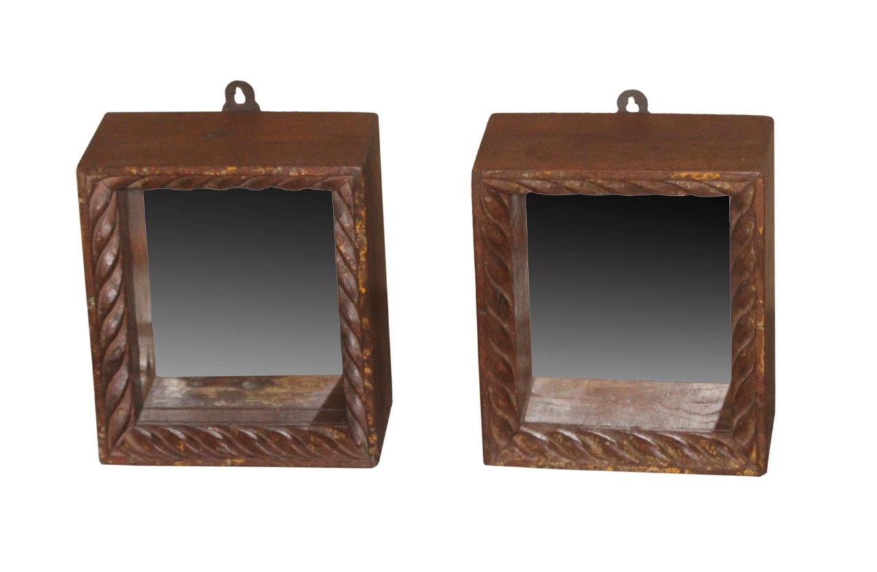 Each mirror is defined by a majestic deep-set shadowbox frame, bordered by a continuous, hand-carved rope-twist relief that adds wonderful texture and depth. Designed with integrated top-mount metal hanging tabs for easy installation, these reclaimed wood style mirrors are perfect for creating a symmetrical gallery arrangement in a luxury hallway, vanity area, or as a decorative duo in a cozy nook.