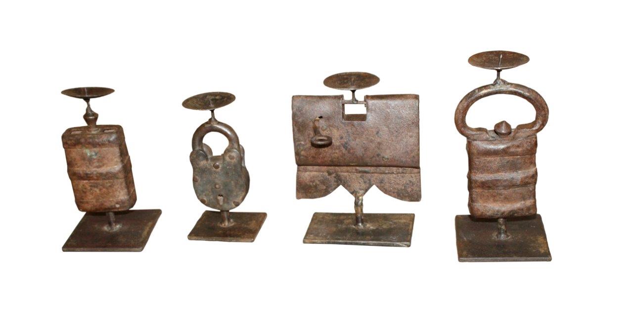 Assorted Antique Metal lock candle holders