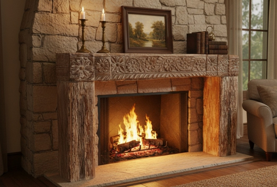 Ground your interior with the rustic architectural beauty of the Floral-Carved Solid Wood Console Table. This premium statement piece is masterfully handcrafted from substantial solid wood, featuring a heavily distressed whitewash finish that reveals the raw, organic textures and deep grain of the timber beneath.