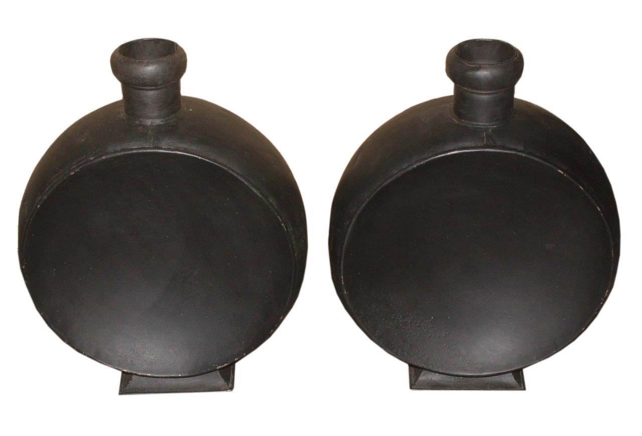 Introduce a bold, royal presence with this striking pair of Metal Painted Vases. Crafted in a unique, oversized flask or water vessel shape, the dark, rich paint finish gives them a commanding and sophisticated look.
