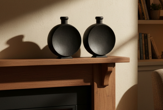 These are premium decorative accents that feature a minimalist circular design on a sturdy base, making them perfect for an industrial, rustic, or modern space. Place them on a console or flanking a fireplace for a simple, dramatic statement.