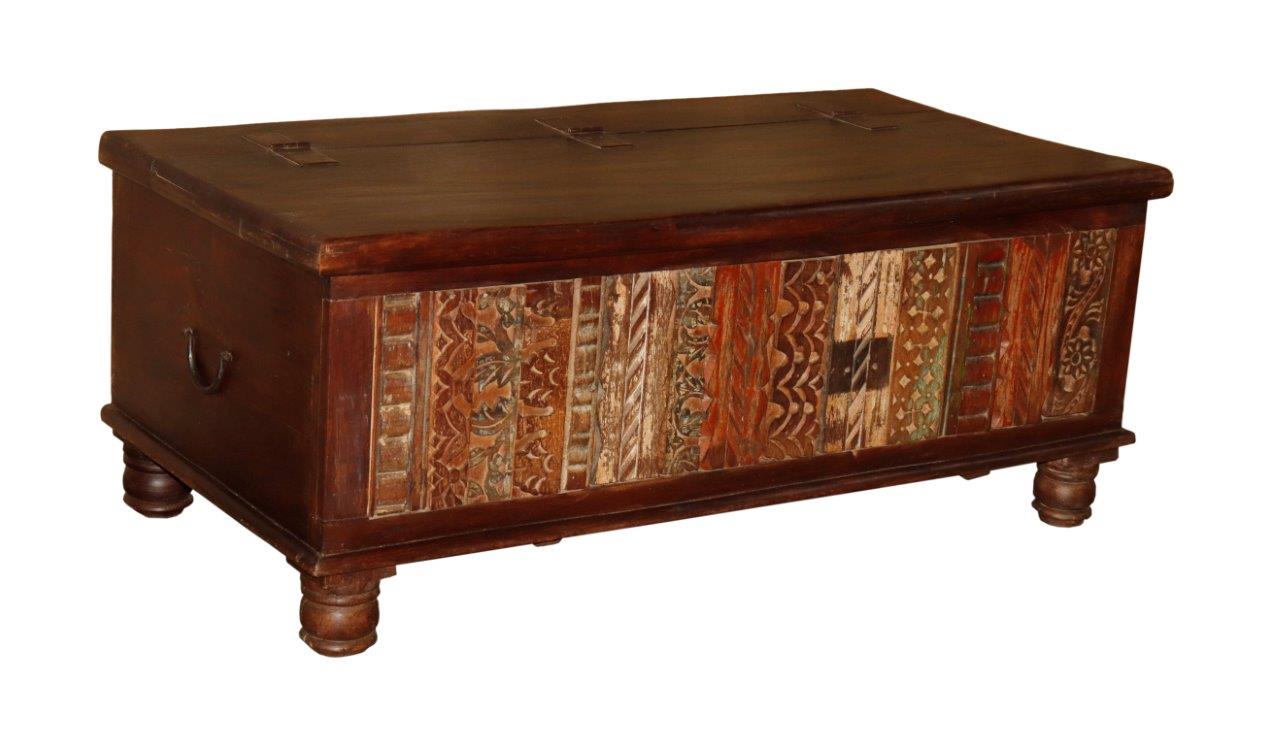Reclaimed Wood Carved Storage Trunk