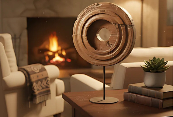 Reclaimed Wood Concentric Artifact on Stand