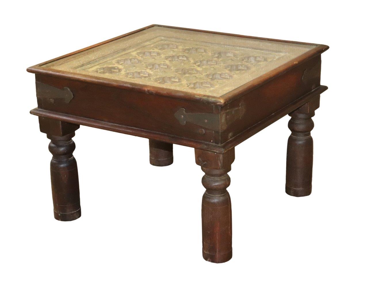 Infuse your living space with the spirit of ancient majesty with the Reclaimed Wood Glass-Top Display Coffee Table. This premium centerpiece is handcrafted from solid, deep-toned wood and features a stunning inset panel protected by a clear glass top.