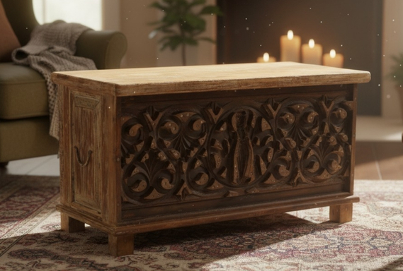 Reclaimed Wood Hand-Carved Storage Chest