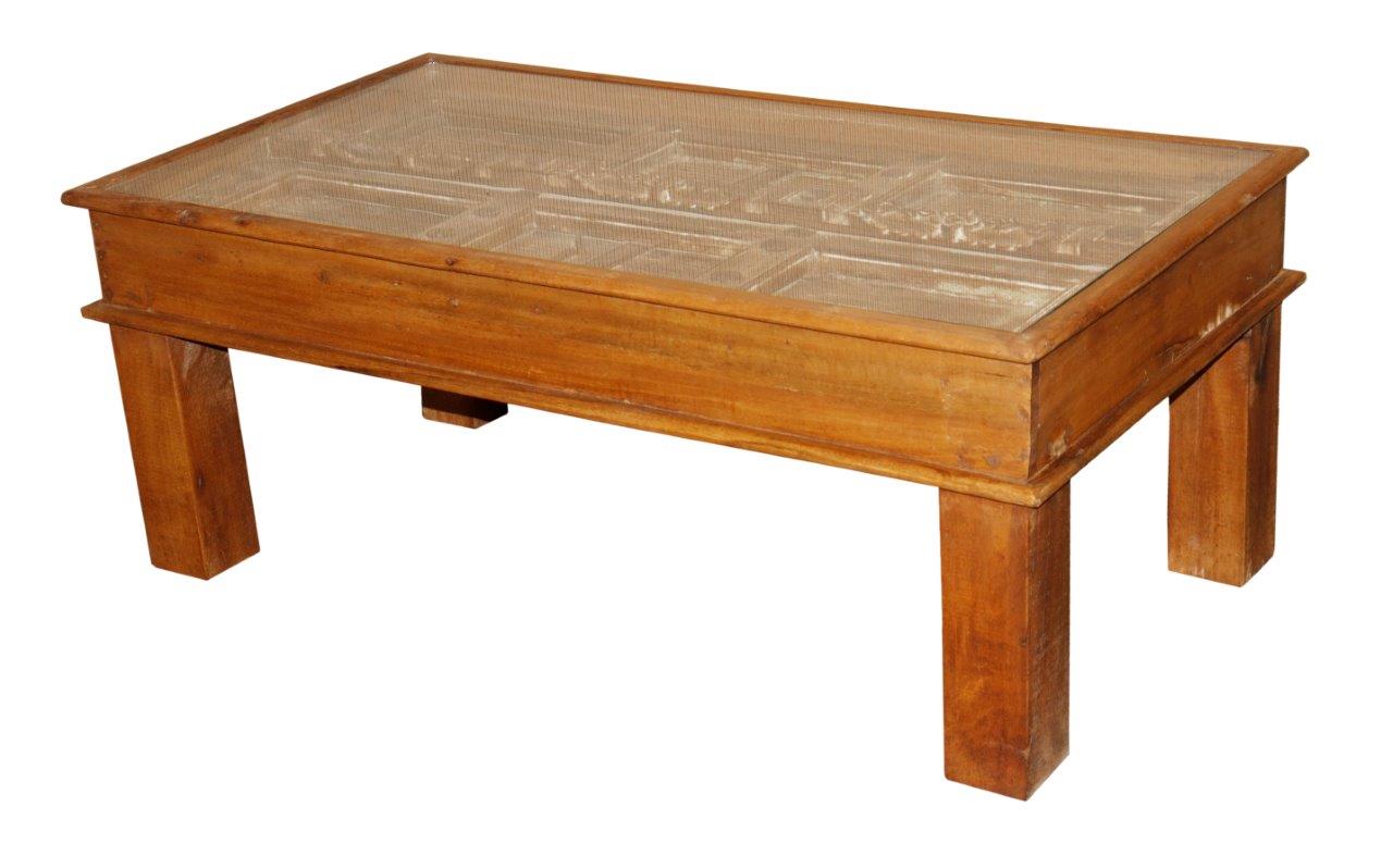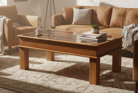 Transform your living room into a private gallery with the Reclaimed Wood Paneled Display Coffee Table. This premium centerpiece is meticulously handcrafted from substantial solid wood, featuring a warm, honey-toned finish that celebrates the natural grain and authentic character of the timber.