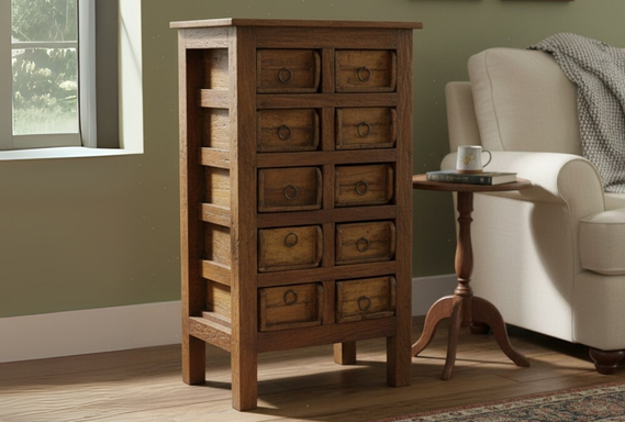 Bring organizational elegance and historical charm to your home with the Solid Wood 10-Drawer Antique Cabinet. This premium storage piece is handcrafted from substantial solid wood, featuring a rich, multi-tonal finish that celebrates the authentic grain and weathered character of the timber.