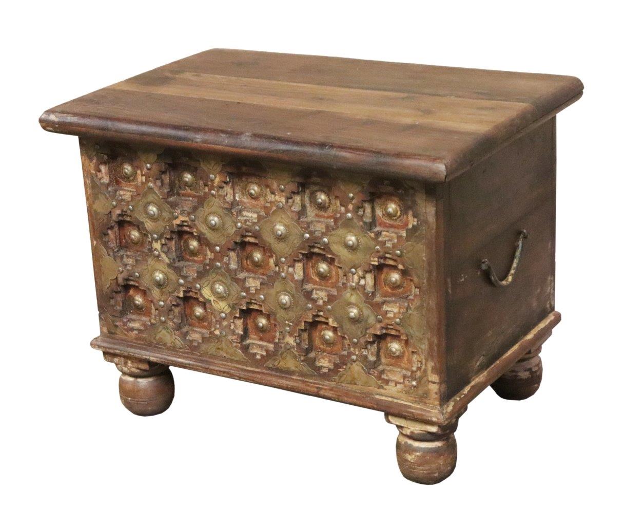 Solid Wood Brass-Studded Chest