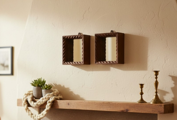 Add a touch of artisan charm to your vertical space with the Reclaimed Wood Deep-Frame Shadowbox Mirrors. This premium set of two accent mirrors is meticulously handcrafted from solid wood, featuring a rich, mahogany-toned finish with a natural weathered patina that highlights the authentic character of the timber.