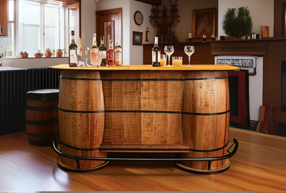 Elevate your home with the Solid Wood Reclaimed Barrel Bar, a piece designed for the true connoisseur of royal luxury. This majestic bar is expertly crafted from reclaimed wood barrels, showcasing a rich, natural finish and sturdy metal bands that speak of timeless elegance.