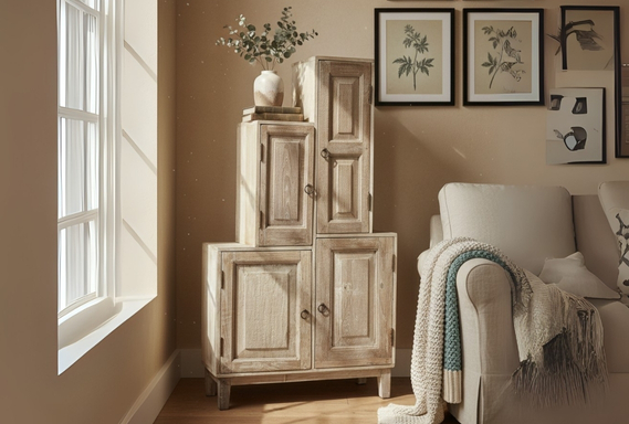 Experience the magnificent presence of this Teak Wood Armoire, a true piece of heirloom furniture. Crafted from rich, beautiful teak, it features four doors fitted with original antique panels that showcase exquisite, timeless artistry. This grand armoire offers generous storage and brings a royal touch of classic elegance and history to your home. It's a simple, yet powerful, statement of premium taste.