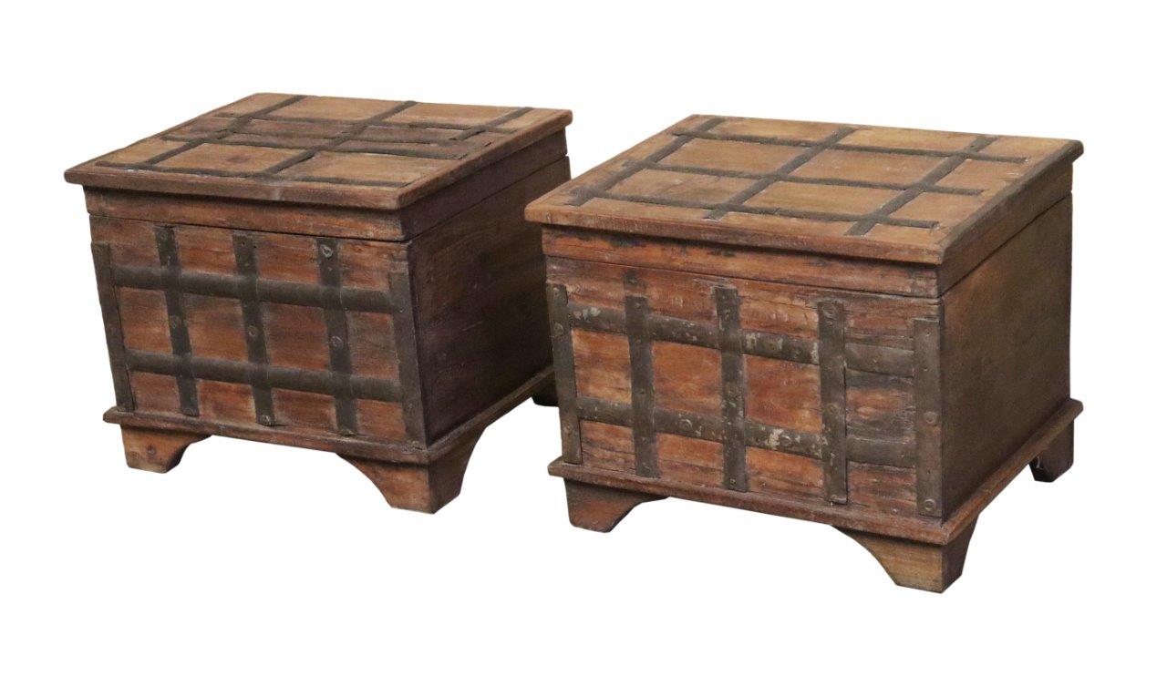 Vintage Reclaimed Wood Industrial Cross-Hatch Chests